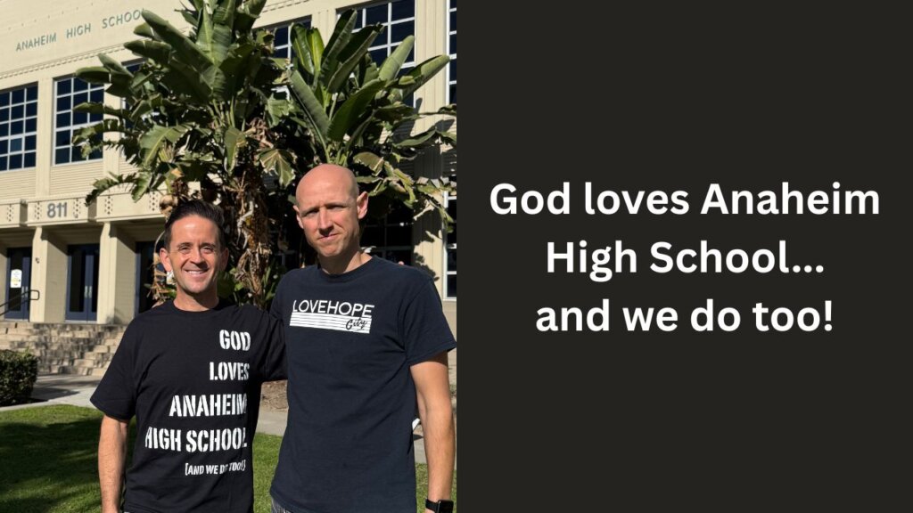 GOD LOVES ANAHEIM HIGH SCHOOL AND WE DO TOO! If you have not heard, an awful situation unfolded on the afternoon of Wednesday December 10th. 8 Anaheim High School Students were injured when a car struck them as they were waiting on the sidewalk. Today, in a packed classroom with all the affected coaches and…